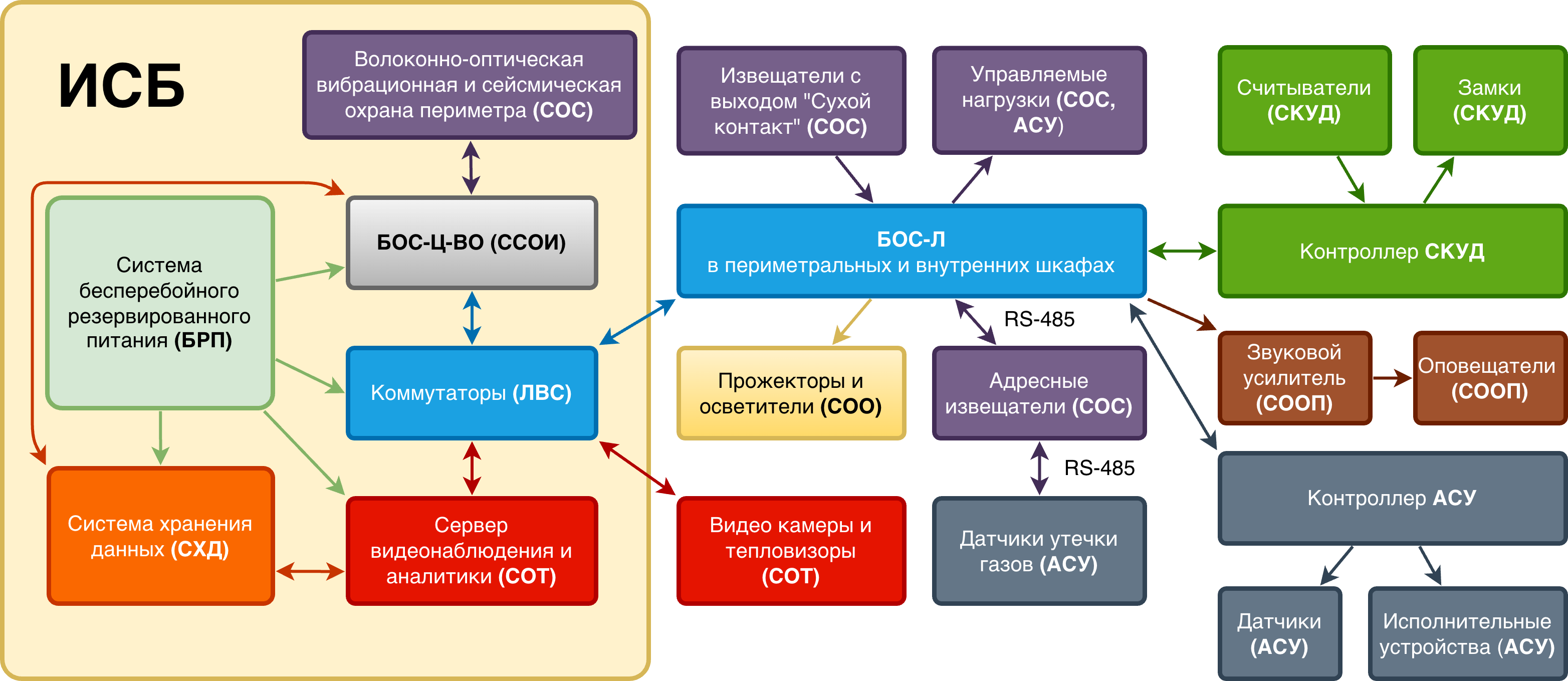 - стойки ИСБ обеспечивают полный функционал системы (система сбора и обработки информации, периметральная и внутренняя охрана, речевое оповещение, контроль и управление доступом, видеонаблюдение);